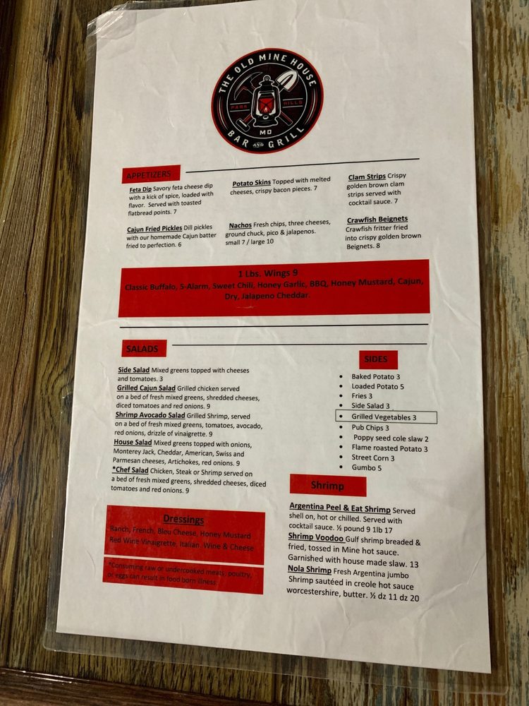 Welcome to The Old Mine House Bar & Grill, a hidden gem located at 235 W Main St, Park Hills, MO. This lively bar and grill serves an enticing menu that features everything from hearty sandwiches to refreshing salads, perfect for every palate. Their offerings include tantalizing salads like the Shrimp Avocado Salad and the zesty Buffalo Chicken Salad, each priced around $14, ensuring a delightful experience with every bite.